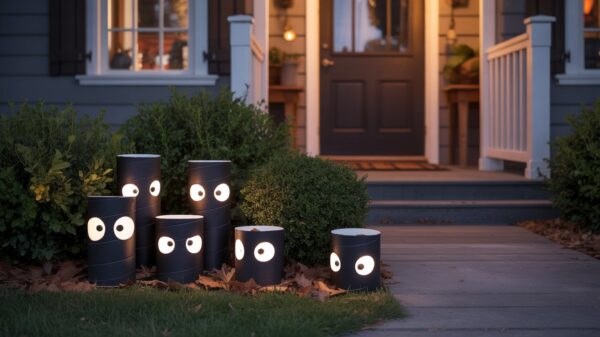 Create the illusion of mysterious creatures lurking in your landscaping with this outdoor project that costs less than a fancy coffee but delivers maximum curb appeal impact. Cut eye shapes from glow-in-the-dark paper or use reflective tape, then attach them to cardboard rolls painted black and stake them in the bushes or in dark corners of your yard. At night, those glowing eyes peer out from the shadows. Vary the heights and positions to suggest different-sized creatures, and watch as neighbors slow down their evening walks to figure out what’s “watching” them from your yard.