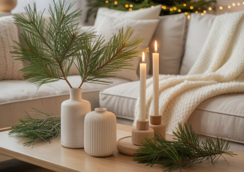 Scandinavian holiday style thrives on simplicity — clean lines, neutral backdrops, and just the right amount of festive detail. Think real evergreens, soft lighting, and intentional pieces that feel warm but not overdone. This is where minimalism meets comfort.