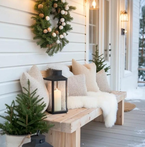 Candles are non-negotiable. Tall tapers, tea lights, and candelabras in the window — it’s all about warm, flickering light that feels timeless. Bonus points if it’s snowing outside and you’ve got a cozy throw blanket nearby.