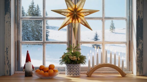 Nothing says Scandinavian Christmas like a glowing paper star in the window. It’s symbolic, simple, and absolutely stunning when lit from within. Hang one (or three) and instantly transform your space with Nordic charm.
