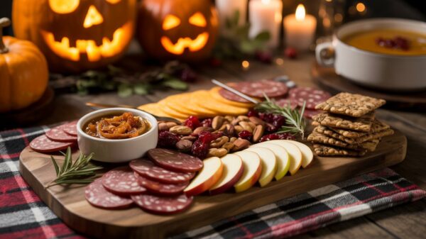 - Charcuterie board with autumn-themed additions (dried cranberries, candied nuts)