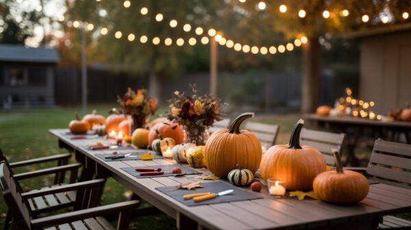 Avoid cluttering the tables with elaborate centerpieces. Keep it simple, but festive. Consider arranging small gourds and colorful leaves as natural centerpieces between carving stations, or draping soft plaid throws over the backs of chairs. The goal is to enhance the autumn mood without creating clutter that interferes with the actual carving.