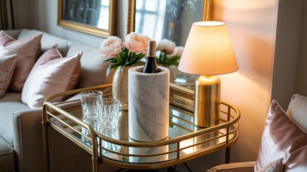 No dedicated bar? No problem. A well-styled bar cart can deliver the same hosting impact without taking over your living